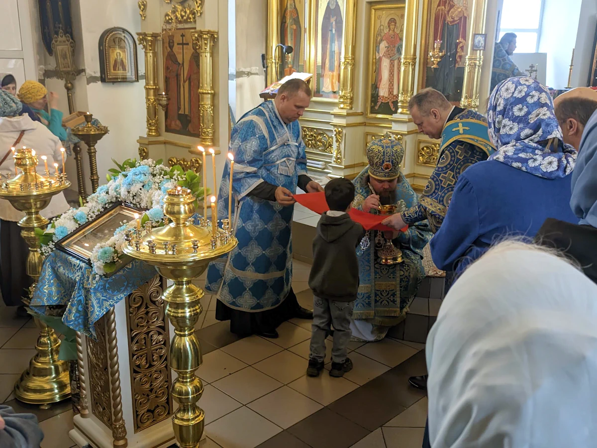 По заамвонной молитве епископ Спиридон совместно с духовенством совершил славление празднику Благовещения.