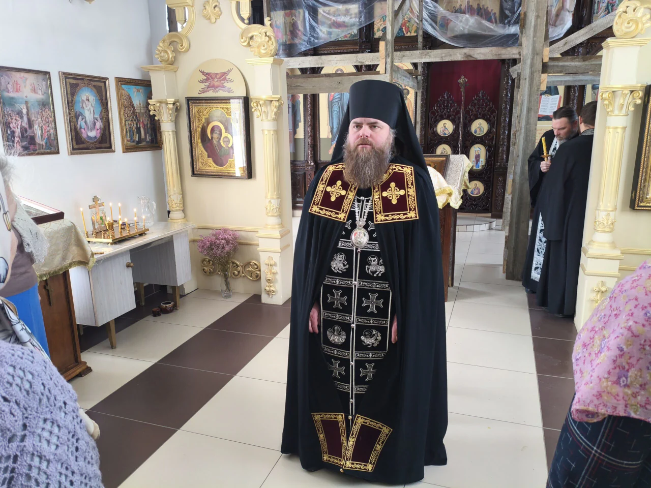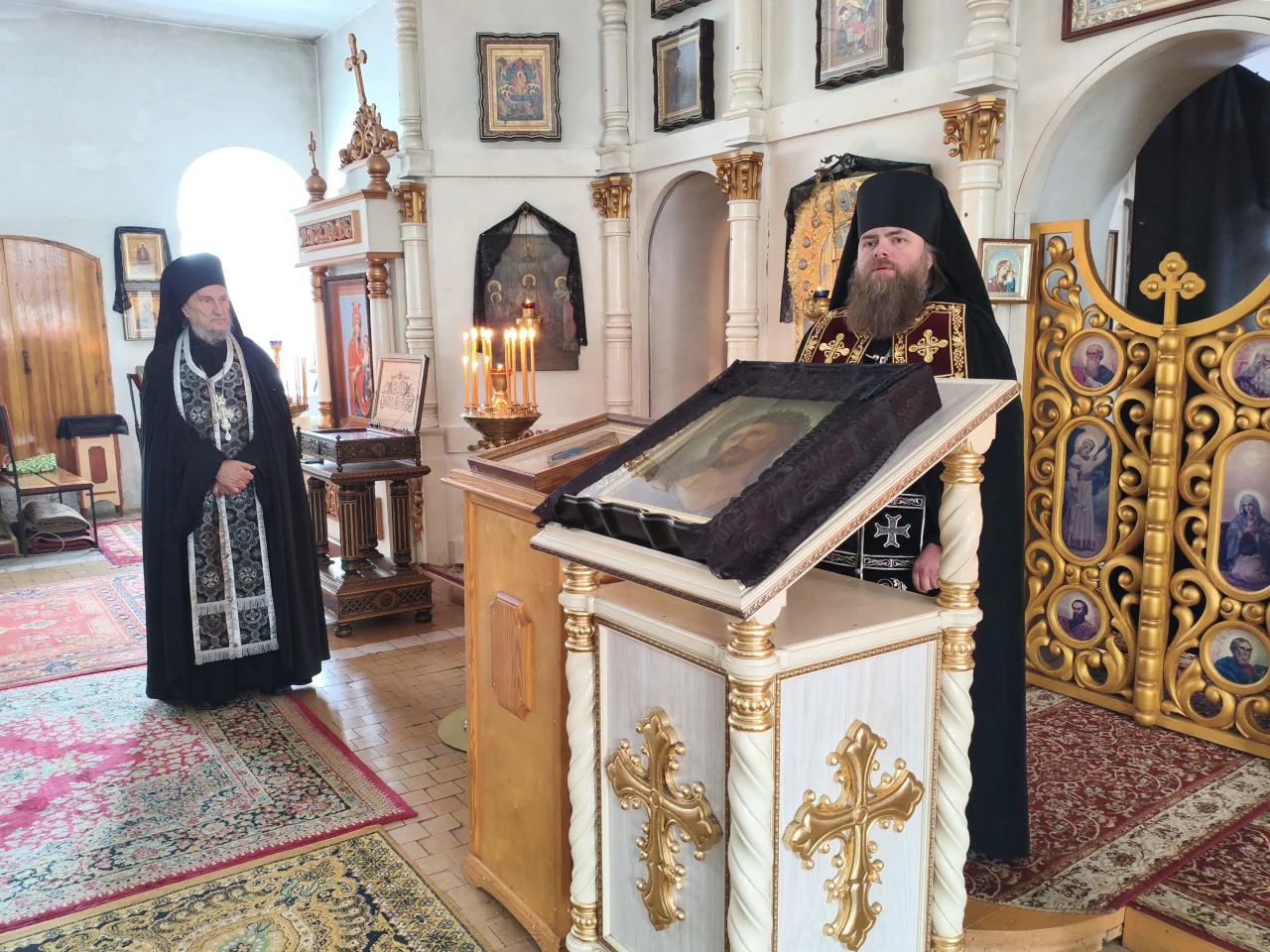 Его Преосвященству сослужили: благочинный Иглинского округа иерей Константин Зырянов, настоятель Михаило-Архангельского храма, игумен Савва (Бабин) - настоятель храма в честь апостола Петра и иерей Николай Слобода - Свято-Никольского храма.
