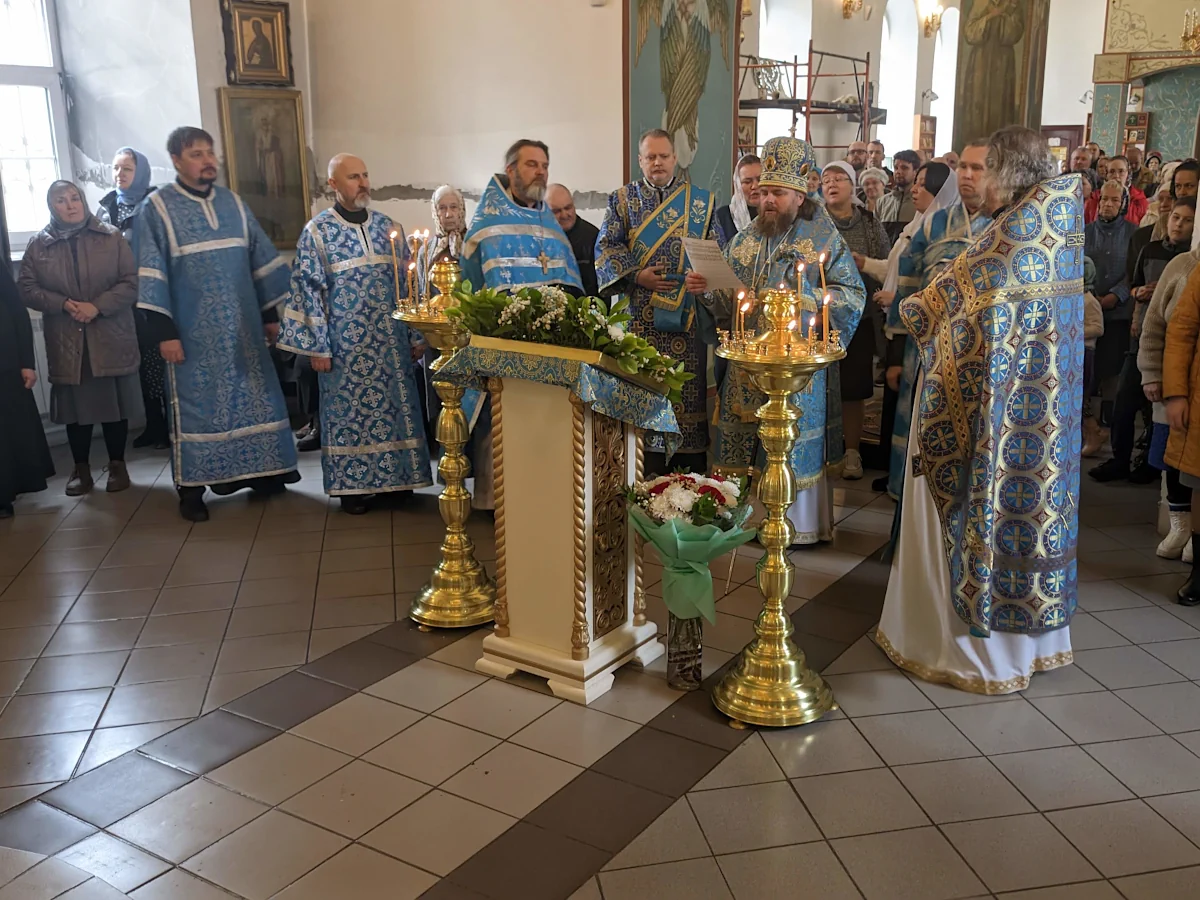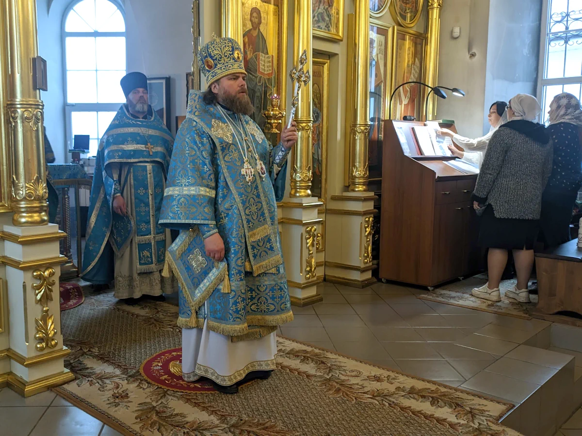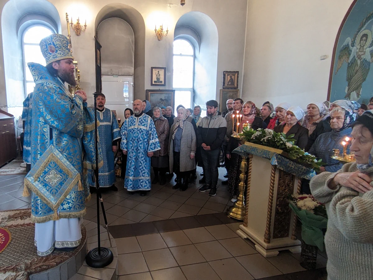 По заамвонной молитве епископ Спиридон совместно с духовенством совершил славление празднику Благовещения.